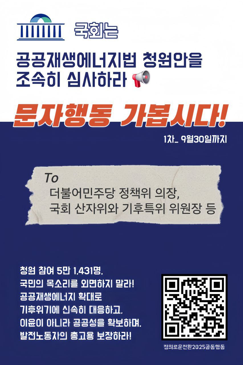 ✉️공공재생에너지법 제정 촉구 문자행동✉️