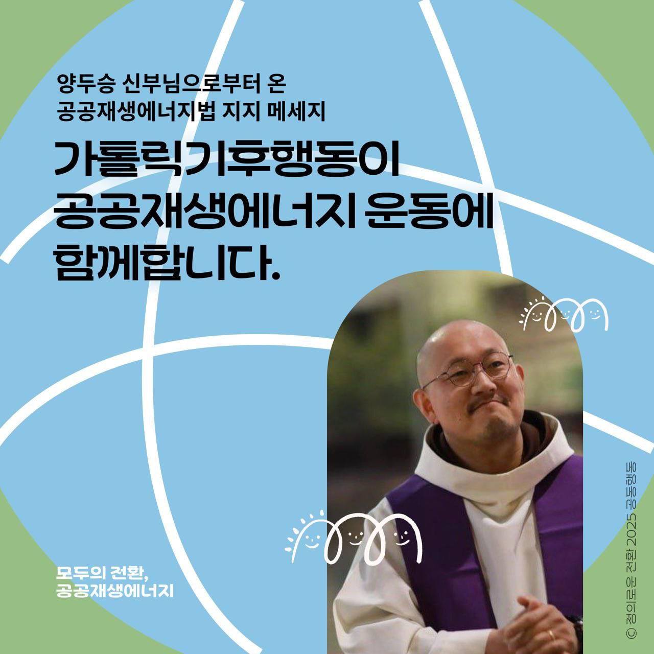 가톨릭기후행동 양두승 신부님으로부터 온 공공재생에너지법 지지 메시지 - 가톨릭기후행동이 공공재생에너지 운동에 함께합니다.