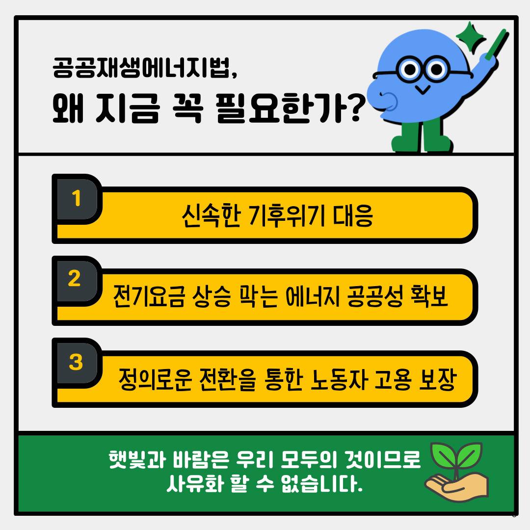 공공재생에너지법이 무엇인지 정리한 카드뉴스를 만들어주셨습니다. (너무 감사드립니다.)